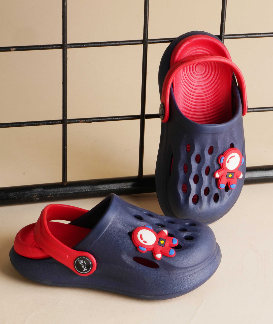 Slingback Clog for Boys & Girls | Indoor & Outdoor Clogs for Kids with Cartoon Charm Navy-Red