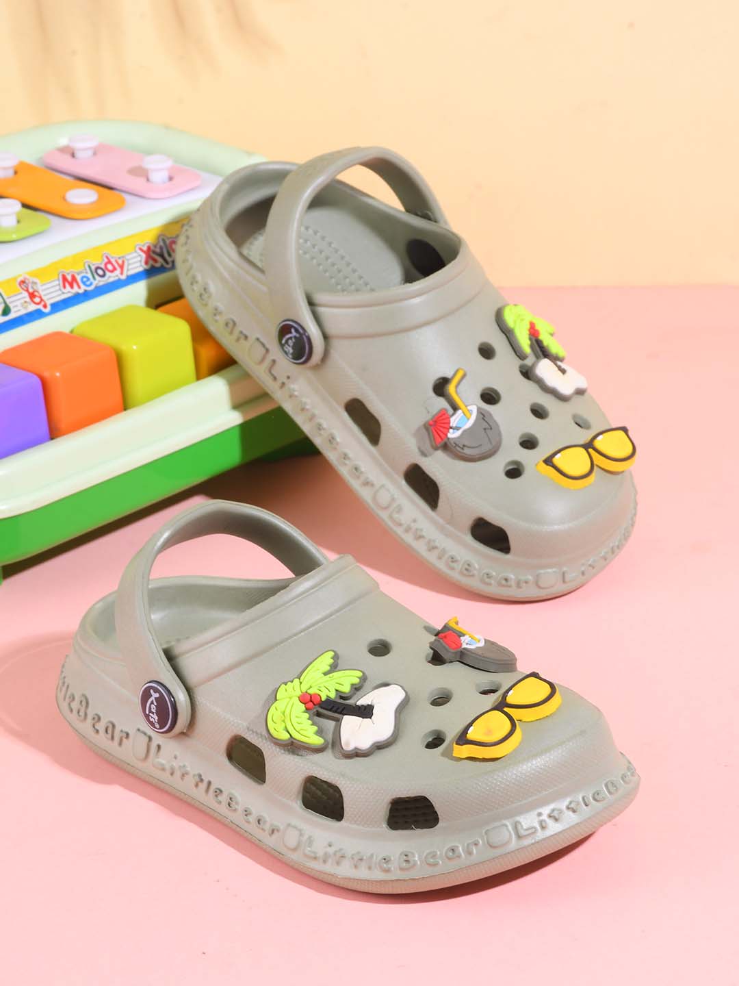 Slingback Clog for Boys & Girls | Indoor & Outdoor Clogs for Kids with Cartoon Charm Beige-Yellow