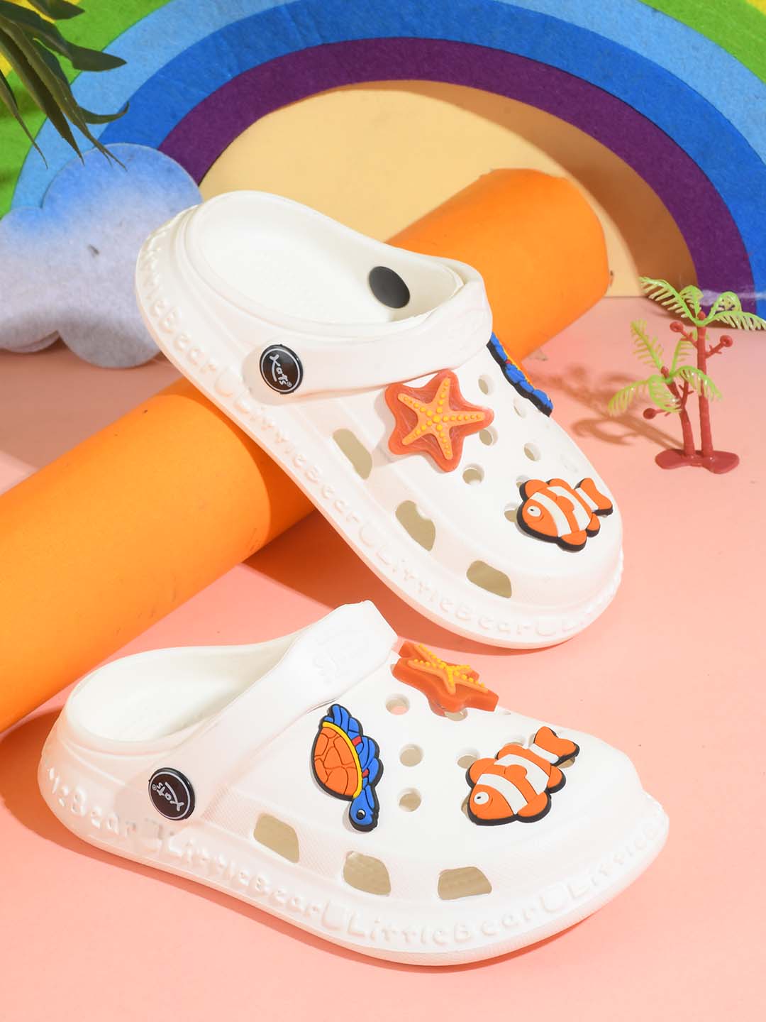 502-Slingback Clog for Boys & Girls | Indoor & Outdoor Clogs for Kids with Cartoon Charm Off White